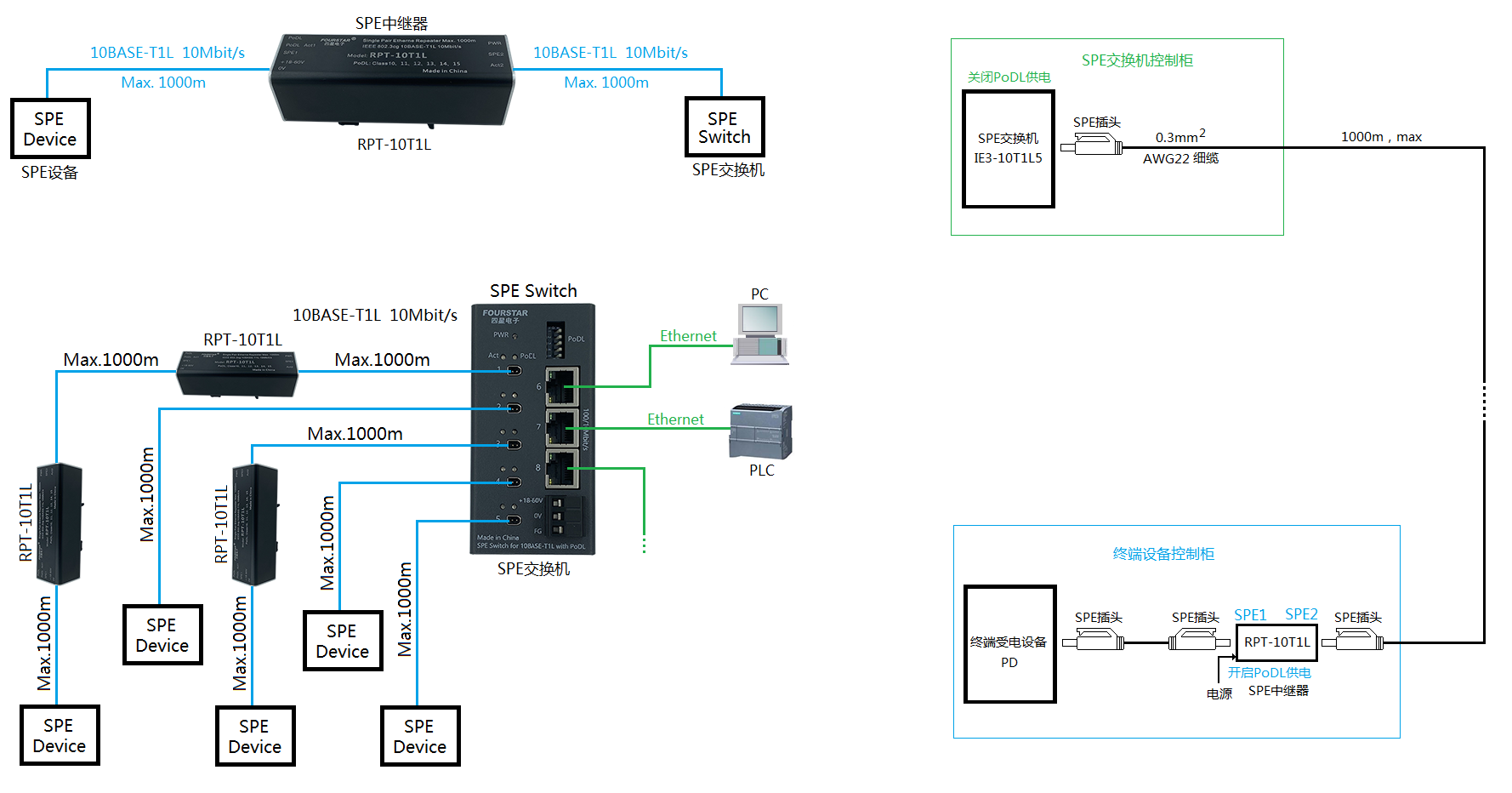 最大傳輸距離 | 1000米。如果使用PoDL供電,則距離受功率和電纜截面積限制。 |