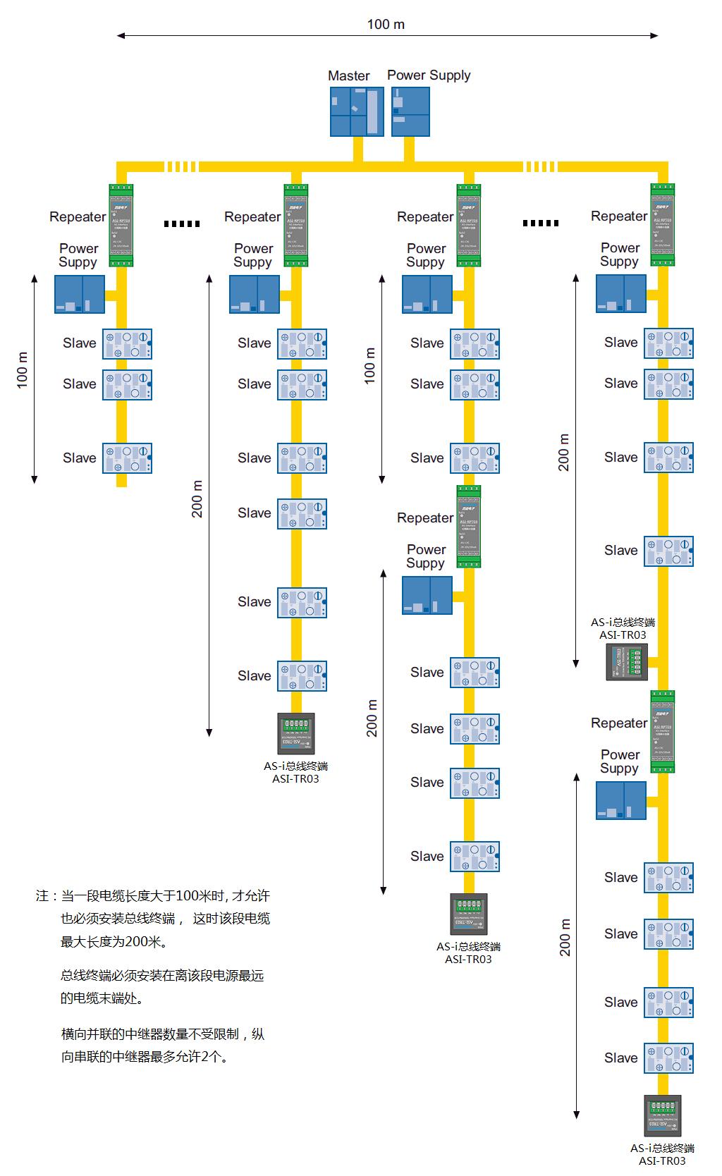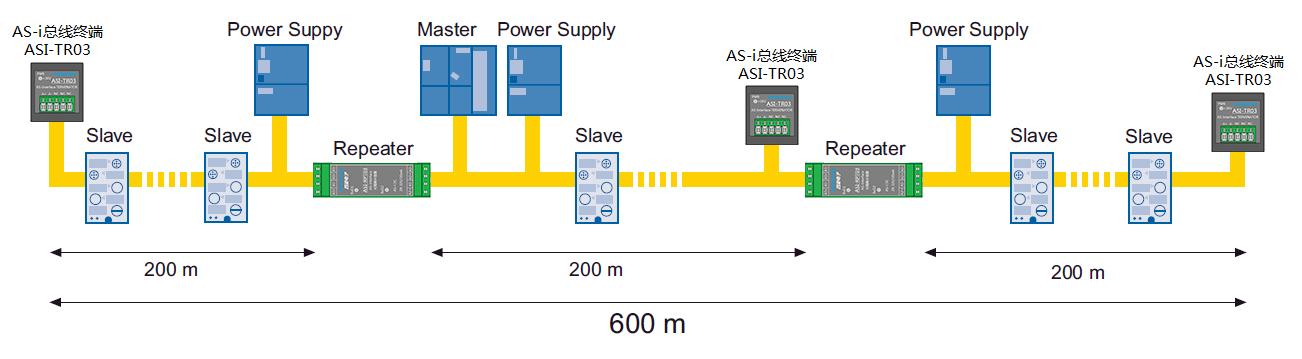 1、AS-Interface中繼器串聯(lián)連接拓?fù)洌?/span>
