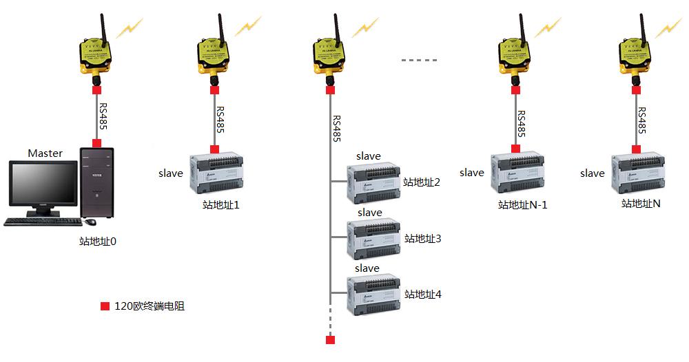改造成LoRa無線傳輸如圖2所示,使用四星電子的FS-LR485A透傳模塊,經(jīng)過簡單設置后就可用無線方式替代原來的電纜傳輸,無需修改原設備的站地址、通訊協(xié)議和軟件等。