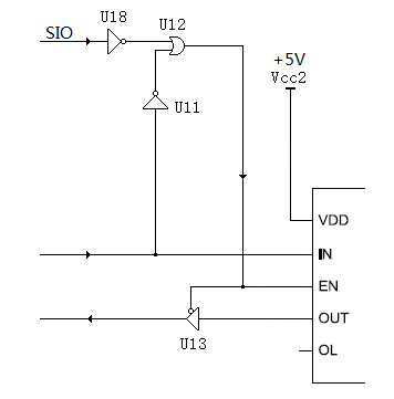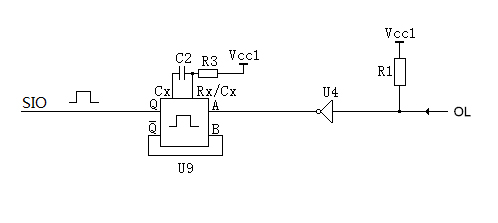 如圖2-4和圖2-5所示,許多IO-Link從站設(shè)備初始上電時為SIO狀態(tài),在IO-Link中繼器長線收發(fā)器中如何按照主機的命令將其轉(zhuǎn)換成IO-Link通訊狀態(tài),喚醒脈沖產(chǎn)生電路和喚醒脈沖接收電路可以實現(xiàn)這樣的轉(zhuǎn)換:當主機發(fā)出喚醒命令時,其過流事件會在A模塊的U1的OL引腳產(chǎn)生一個低電平信號,該信號被非門電路U4反相后輸出給單穩(wěn)態(tài)電路U9,由U9和R3、C2產(chǎn)生一個短暫的喚醒脈沖,經(jīng)接口CN2、長線電纜、輸出給B模塊接口CN3,經(jīng)U18反相后輸入給或門電路U12,控制收發(fā)器U10的使能控制引腳EN為高電平,從而將主機的喚醒脈沖發(fā)送給連接在CN4上的IO-Link從站設(shè)備,將其喚醒轉(zhuǎn)換成IO-Link通訊模式。