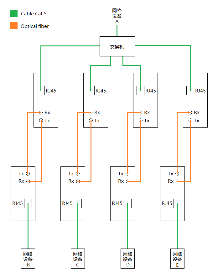 ● 最大傳輸距離:五類雙絞線(Cat.5)100米,單模光纖20千米。