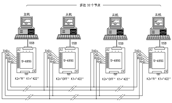USB到RS485/422光隔離轉(zhuǎn)換器,全雙工半雙工通用,USB端口自供電,無(wú)延時(shí)自動(dòng)收發(fā)轉(zhuǎn)換,波特率300bps~1Mbps自適應(yīng),最大通信距離為2km(9600bps)、3km(4800bps),外形為導(dǎo)軌安裝的工業(yè)結(jié)構(gòu),帶有通信指示燈,可帶128個(gè)RS485節(jié)點(diǎn),防雷擊。