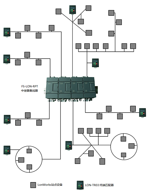 LonWorks中繼器集線器,單個(gè)為中繼器,N個(gè)可組成2N口集線器。
