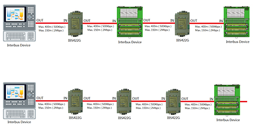 Interbus中繼器,延長兩個(gè)站點(diǎn)之間的通訊距離。