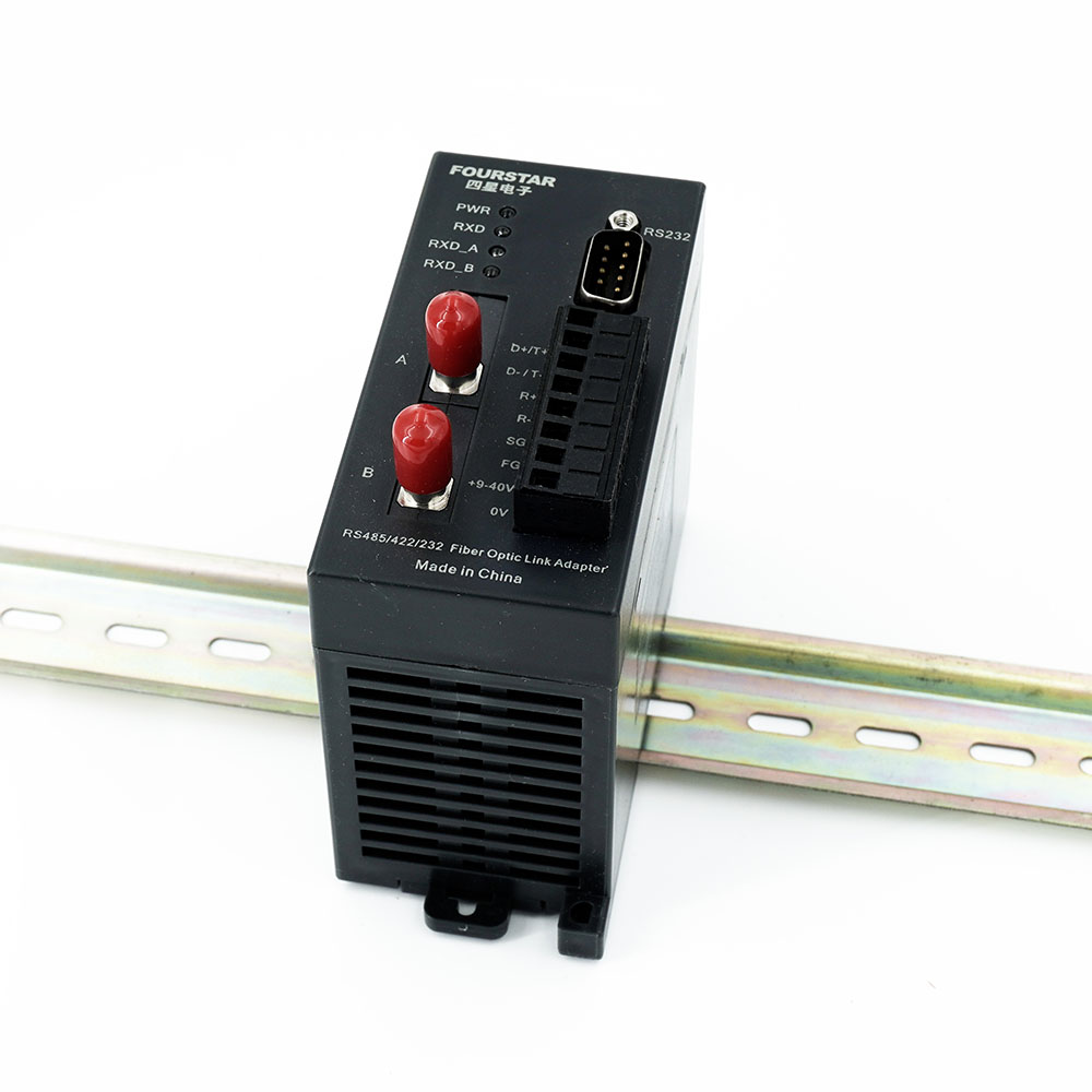 單纖雙光口RS485/422/232單模光纖鏈路模塊。1電2光,單纖傳輸,實(shí)現(xiàn)RS485/422/232信號(hào)高速遠(yuǎn)距離傳輸,徹底解決通訊中的電磁干擾、地線環(huán)路干擾和雷電破壞等工程難題??蓪?shí)現(xiàn)點(diǎn)對點(diǎn)、總線型、星形和混合型光纖網(wǎng)絡(luò)。數(shù)據(jù)透明傳輸,無需改動(dòng)原有的通信協(xié)議和軟件,速率0~500Kbps自動(dòng)適應(yīng),9~40VDC寬電壓隔離供電,適用光纖:單模 9/125、10/125、8.3/125um,光纖傳輸距離:0~10km,ST光纖接頭,-40~+85℃工業(yè)級(jí)工作溫度,DIN35mm標(biāo)準(zhǔn)導(dǎo)軌安裝。
