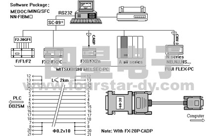 光電隔離型SC-09編程電纜,RS232/RS422隔離。