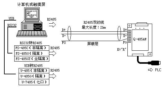 三菱Q系列PLC編程口轉(zhuǎn)RS485適配器。將Q系列PLC的編程口(RS232)轉(zhuǎn)換成RS485信號進行遠距離傳輸,最大通信距離可達1200米,內(nèi)部采用光電隔離抗干擾設(shè)計并內(nèi)置防雷擊浪涌保護電路,特別適合惡劣的工業(yè)環(huán)境。同時在Q-485AW上還設(shè)計了隔離的RS232接口,以滿足PLC與上位機或觸摸屏的近距離通信。